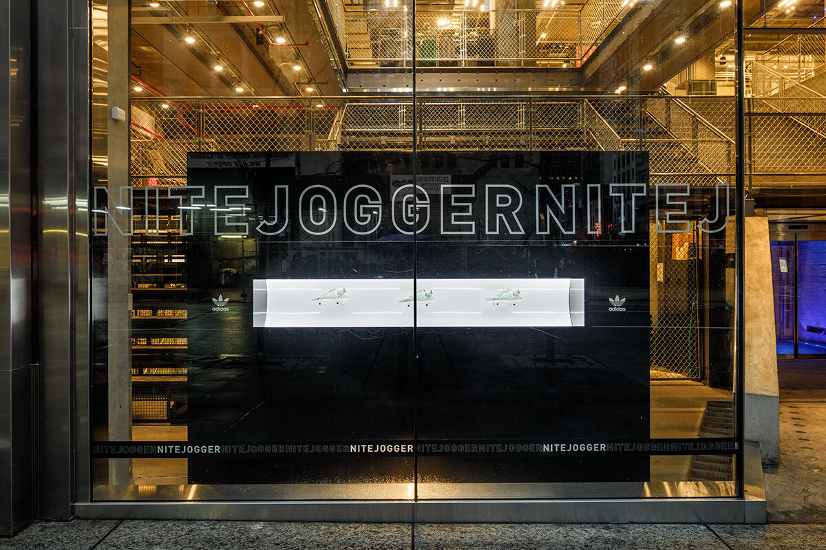 Originals Nite Jogger campaign at adidas NYC flagship store. The team at Roundhouse was asked to concept, design, and collaborate with fabrication partners to roll out a complete retail experience. I was a 3d designer on the project developing concepts for the window displays, footwear pedestals, as well as graphic treatments throughout the space.